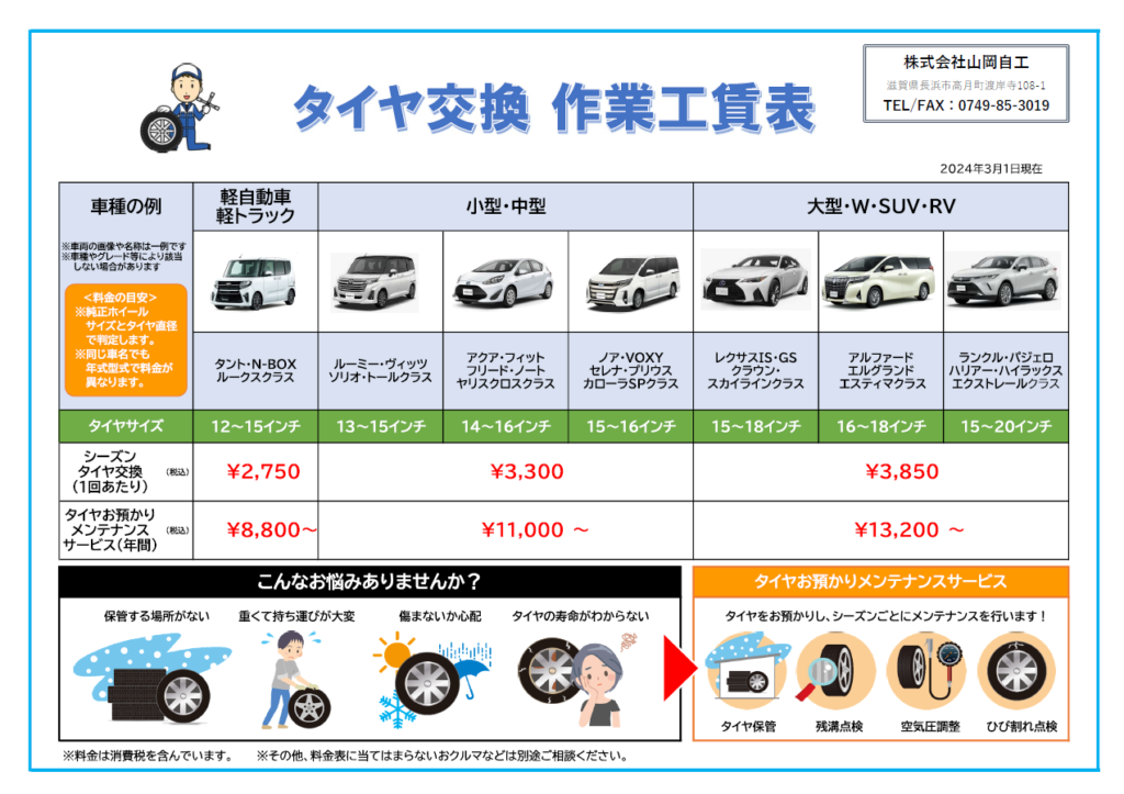 ※保管料金はタイヤサイズにより異なります。詳細はお問い合わせください。